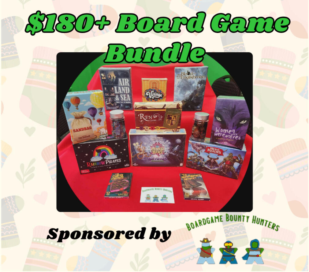 A board game bundle courtesy of Boardgame Bounty Hunters. $180-MSRP-worth of easy-to-understand games for both normal gamers and beginners, plus 2 sets of nice dice!