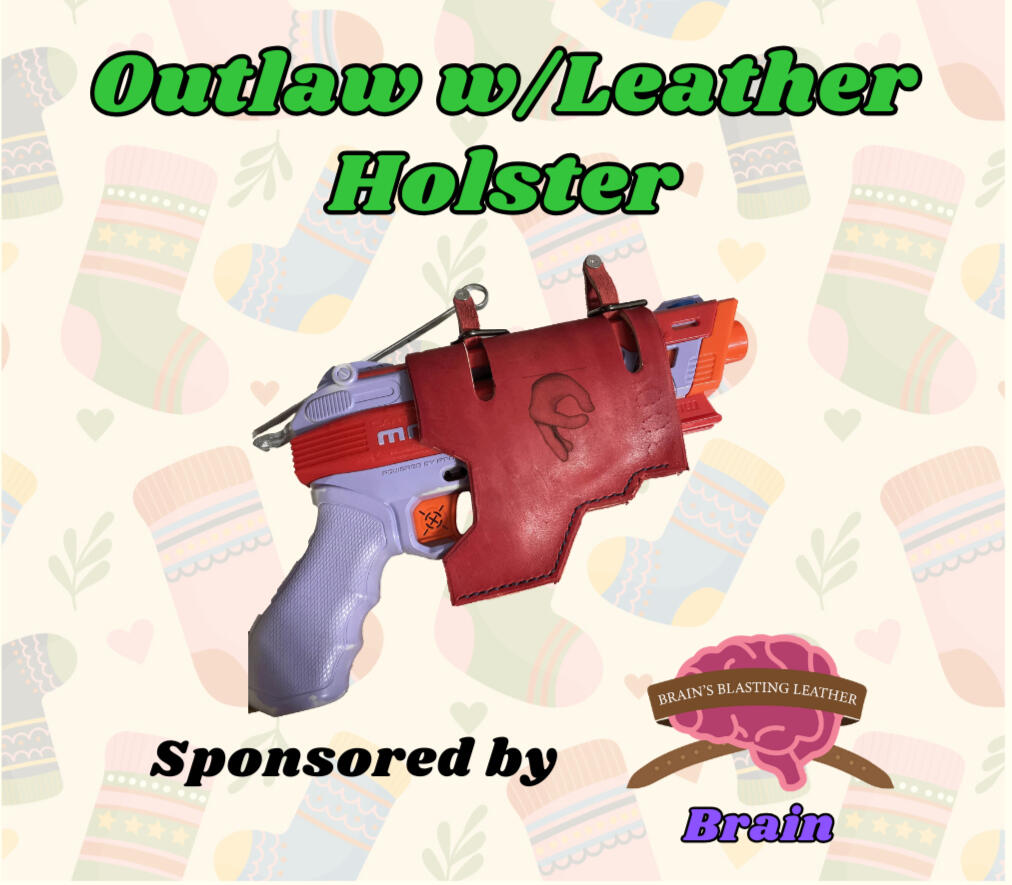 A custom designed handmade leather holster for the Dart Zone Outlaw, as well as a Dart Zone Outlaw. (Convenient!)